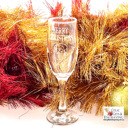 This champagne glass will make the ideal Christmas gift for someone special or that perfect staff gift, the glass can even be personalised with your own message. Glass is engraved with Merry Christmas and a picture of Santa