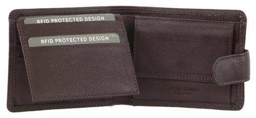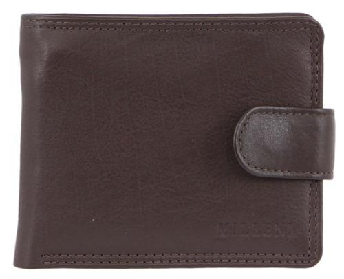 Brown Milleni leather wallet with 8 card compartments, coin pocket and two notes compartments and strap to hold wallet closed. Perfect to hold many cards and can have an initial or a name burnt into the leather to make a personalised gift for any occasion. When open the wallet measures 21.5 x 9cm. This wallet is Radio Frequency Identification Protected, protecting you from payment & Identity fraud from unwanted scanning of your credit cards.