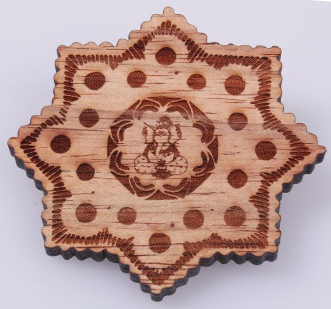 This beautiful ganesh elephant surrounded in a pattern is laser cut and engraved from Otway’s Black Wood to give it a beautiful natural finish.
